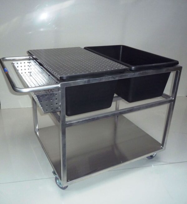 1 x Ablagebehälter aus Aluminiumlochblech am Griff (auf Wunsch)